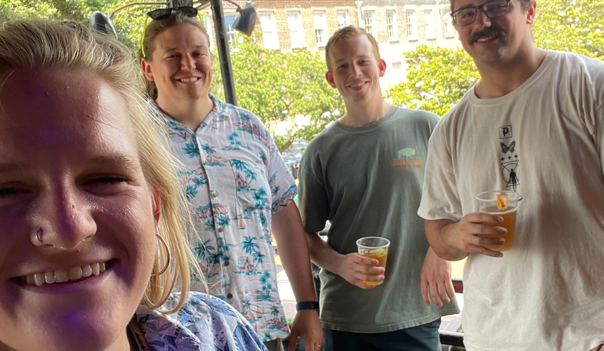 We then set-off to explore Savannah. It was a rainy day, so we looked for indoor activities and found a bar with duckpin bowling. I had never heard of duckpin bowling. It was super fun! It has miniature pins and bowls. You also have to set the pins back up yourself. In one of the best moments of Trent Cleary’s life, he bowled a strike, turned around while giving a big fist pump and there stood Joey and Andy!! He was so happy!!