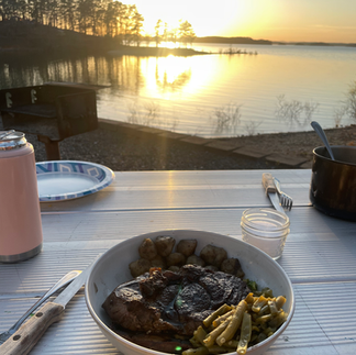 When we parked, we were in awe of the area. It was beautiful and we had a great spot! Once we got set-up, we made a premium camping dinner. Ramen noodles with peas, mushrooms, and steaks. It was delicious!