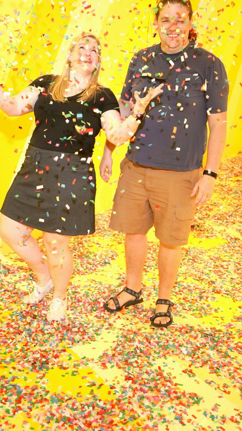 The next afternoon we were scheduled to move on to the next city, but I found a museum online that I just HAD to visit. We were dying to head to Austin, but I couldn’t pass up the opportunity to see this museum. I begged T to go, and of course he said yes! There is an entire room dedicated to CONFETTI!! This is my kind of place! We had the BEST time! One of the top highlights of the road so far! The museum is a colorful, interactive art museum. Several rooms had little snacks that matched the colors in the room and each room had a photo op with a QR code system, so we were able to get professional pics. We had a lot of fun with the pictures!