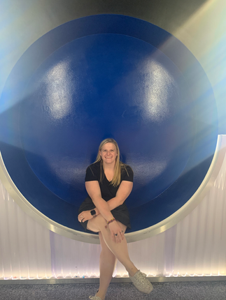Each room in the museum also had a specifically chosen song. The music made the experience even better! One room was playing “Pure Imagination” from Willy Wonka which reminded me of my college days. Willy Wonka was the theme of our senior homecoming. <3 The walls and floor were all black and white striped. There were colorful circles on the floor with quotes from kids about what different colors made them feel. My personal favorite was from Tyra, age 10. She said, “Coral makes me feel like I ate breakfast in the morning.” Samez. Each colorful circle had air blowing from the middle. The yoga balls in the room would float in the air when placed in the center of the circle. This room made for some really fun pictures!